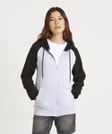 80% Ringspun cotton, 20% Polyester. Twin-needle stitching detail. Contrast raglan sleeves. Double fabric hood. YKK plastic zip. Contrast flat lace drawcords. Spilt kangaroo pocket. Ribbed cuffs and hem. Soft cotton faced fabric creates ideal printing surface. Simple tear-out label makes it perfect for rebranding. Brushed inner fleece.