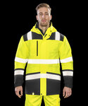 EN343 3:1 Waterproof 8000mm, Breathable 3000mvp, Windproof. Soft-feel printed safety body bands. Tear release and part elasticised cuff. Adjustable foldaway hood. Tear release front pocket and stormflap. Zip chest pockets. Black colour contrast. Quilted lining. Stand-up collar. Taped seams. Hangtag. Ready to brand - tag free. EN ISO 20471:2013+A1-2016 - Class 2. RIS-3279-TOM - Class 2 (Orange only). Oeko-Tex certified.
