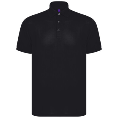 Polo shirt made from recycled polyester yarn with wicking properties. Regular fit with 3 button placket. Henbury stand-up collar. 1x1 ribbed collar and cuffs. Dyed to match buttons.